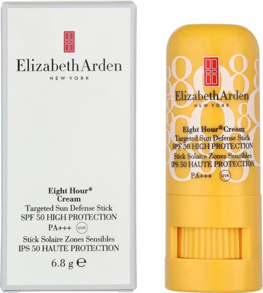 Balsamo solare Elizabeth Arden Eight Hour Cream Stick SPF 50. Protezione impermeabile per aree sensibili come labbra, naso e orecchie. Nutre e idrata la pelle fino a otto ore. Privo di oli e PABA. 6,8 g.