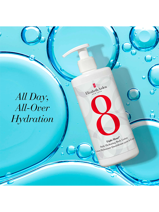 Ottieni un’idratazione completa per tutto il giorno con la NUOVA Eight Hour® Daily Hydrating Body Lotion di Elizabeth Arden. Una lozione multi-beneficio, leggera e a lunga durata che protegge e idrata la pelle secca. Arricchita con burro di karité di origine naturale, olio di avocado, glicerina e un complesso probiotico di origine naturale, aiuta ad alleviare la secchezza cutanea e a rafforzare la barriera cutanea, lasciando la pelle idratata, luminosa e dall’aspetto sano. La formula a rapido assorbimento e non grassa, con una fragranza rigenerante, ammorbidisce e leviga la pelle.