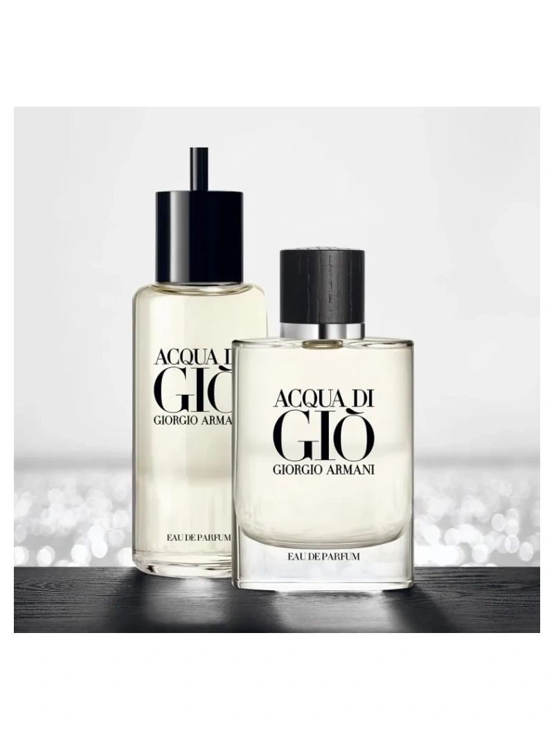 ACQUA DI GIÒ EAU DE PARFUM cattura la potente freschezza del mare. La fragranza si apre con note di testa marine e di mandarino verde, con un cuore di salvia e vetiver e patchouli nel fondo. Nell`ambito dell`impegno di Giorgio Armani per un futuro migliore, ACQUA DI GIÒ EAU DE PARFUM è realizzato con ingredienti provenienti da fonti sostenibili: una fragranza che cattura l`essenza del mare ed è attenta al pianeta. Questa preziosa fragranza è concepita per durare: ciascun formato di ACQUA DI GIÒ EAU DE PARFUM è progettato per essere svitato e ricaricato a casa con il flacone di ricarica in vendita separatamente.