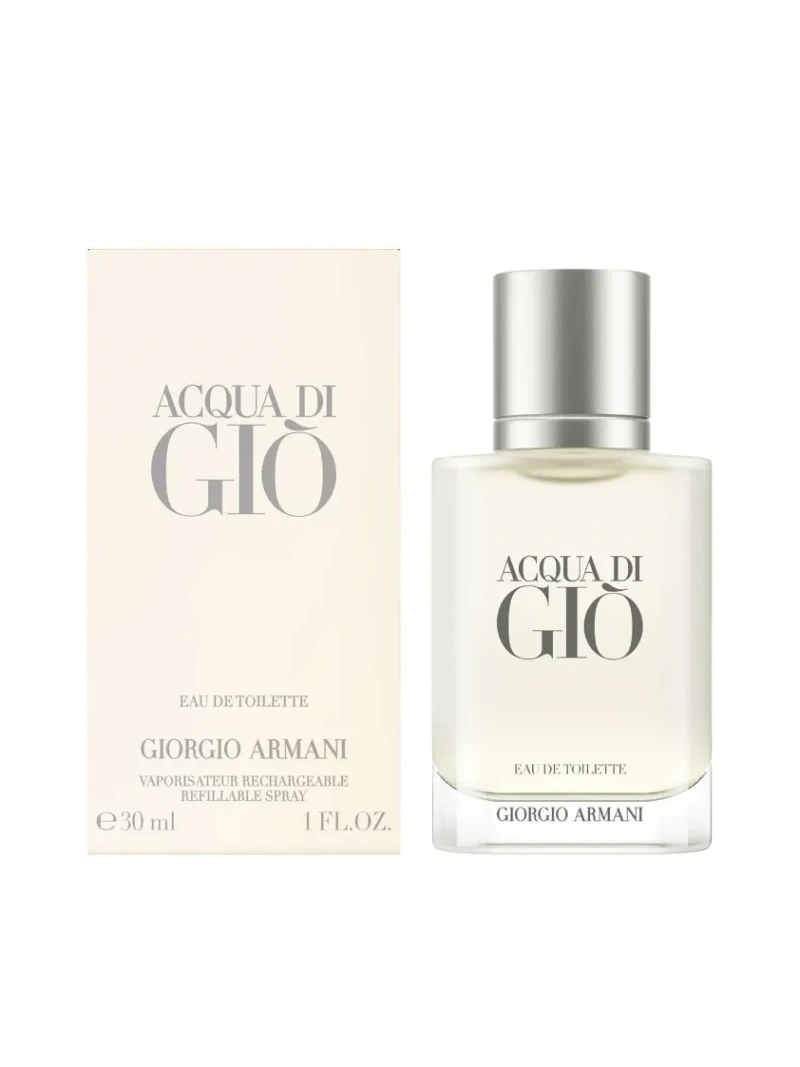 ACQUA DI GIÒ EAU DE TOILETTE cattura l`essenza del Mediterraneo. La fragranza si apre con note marine e di bergamotto, che creano la sua iconica freschezza. Il cuore è una miscela di gelsomino, legno di cedro e rosmarino, note aromatiche che evocano il paesaggio mediterraneo. Le note di fondo del profumo, composte da muschi bianchi e patchouli, catturano la forza maschile della fragranza. ACQUA DI GIÒ EAU DE TOILETTE segna l`inizio della fragranza e rimane ancora oggi la sua firma originale. In un nuovo flacone moderno, l`icona conserva il vetro smerigliato, firma della fragranza, che ora passa al vetro trasparente alla base del contenitore. Come parte dell`impegno di Giorgio Armani per un futuro migliore, l`icona è ora ricaricabile: ogni formato di ACQUA DI GIÒ EAU DE TOILETTE è progettato per essere svitato e ricaricato a casa con il flacone di ricarica da 150 ml venduto separatamente.