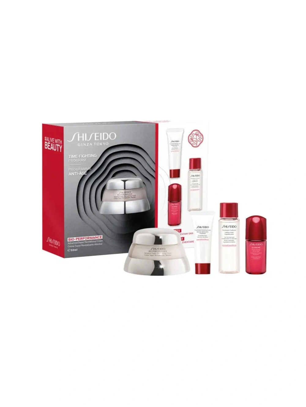 Shiseido Bio-Performance Rituale Di Bellezza Contro Il Tempo. Adatto per: Donna, Effetto della lozione per il viso: Setificante, Lozione per il viso: 30 ml. Quantità per pacco: 4 pz, Tipo di imballo: Confezione Ottieni una pelle perfettamente idratata, luminosa e morbida con il rituale di bellezza contro il tempo. Bio-Performance sfrutta l`esperienza di Shiseido nella ricerca per offrire soluzioni all`avanguardia per la cura della pelle, ispirate alla biotecnologia e alle procedure cosmetiche. Il set contiene: Bio-Performance Advanced Super Revitalizing Cream – 50 ml Clarifying Cleansing Foam – 15 ml Treatment Softener – 30 ml Ultimune Power Infusing Concentrate – 10 ml Bio-Performance Advanced Super Revitalizing Cream (50 ml) La soluzione avanzata per contrastare i segni del tempo La soluzione anti-age globale per una pelle dall`aspetto liscio ed elastico. Pensata per le donne preoccupate dei primi segni dell`età in cerca di risultati rapidi. Clarifying Cleansing Foam (15 ml) Per tutti i tipi di pelle. Un ricco detergente schiumogeno per rimuovere efficacemente impurità, cellule morte in eccesso, agenti inquinanti e ossidanti per una pelle più luminosa e idratata. La pelle risulta morbida e luminosa, la sua texture affinata e idratata. Treatment Softener (30 ml) Pelle normale, mista e grassa. La lozione idratante con una tenuta di 24 ore rilascia una sensazione di freschezza e viene assorbita velocemente dalla pelle, per un`idratazione che dura tutto il giorno. Ultimune Power Infusing Concentrate (10 ml) Il nostro siero anti-age n°1 diventa ancora più efficace grazie ad un`innovativa doppia tecnologia anti-età formulata con 8 ingredienti vegetali. Per una pelle dall`aspetto più giovane e sano! Rituale Di Bellezza Contro Il Tempo