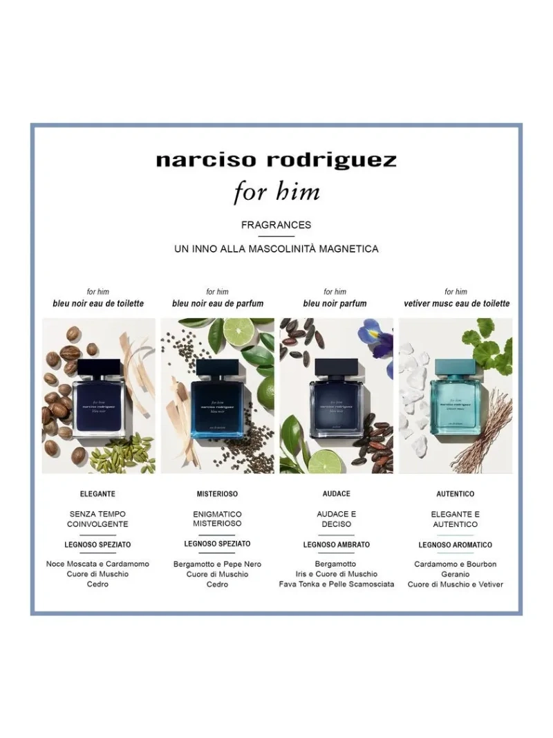 Questo set regalo include: – For Him Bleu Noir Eau de Parfum 100ml; – For Him Bleu Noir Gel Doccia 50ml; – For Him Bleu Noir Eau de Parfum Spray 10ml. Festeggia il Natale con Narciso Rodriguez, dove ogni regalo porta con sé un momento di gioia ed emozione. Vivi la magia di scartare i regali, tra fiocchi e nastri colorati, e la gioia di un regalo unico. Rendi il suo Natale indimenticabile con il regalo perfetto per lui. Un profumo elegante per uomo. L’uomo che indossa For Him Bleu Noir Eau de Parfum è magnetico, coltiva il perfetto equilibrio tra eleganza e mistero e sceglie la raffinatezza come sua firma. Una fragranza magnetica con una scia elegante. Note avvolgenti di ambra e legno si incontrano attorno a un cuore di misterioso muschio. Un infuso blu elettrico cattura l’interno blu scuro del flacone. Un cofanetto regalo 100% cartone, realizzato in modo più responsabile. LESS IS MORE: un cofanetto regalo 100% cartone, Narciso Rodriguez ha progettato le sue confezioni regalo in modo più responsabile. Ti invitiamo a dare una seconda vita alle tue confezioni regalo riutilizzandole o riciclandole. Le linee guida per il riciclaggio possono variare a seconda della località.