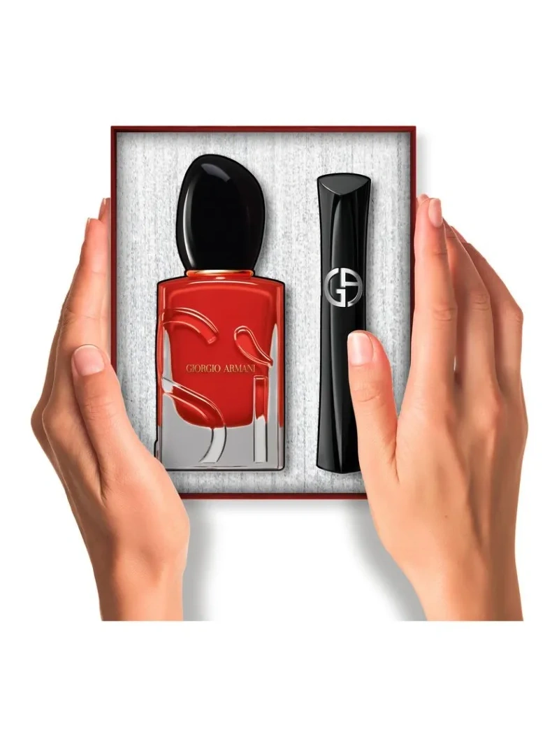 Questo cofanetto regalo Sì Passione Eau de Parfum contiene: – Sì Passione Eau de Parfum 50ml; – Mini Mascara Vertigo Lift. Per queste Feste, il cofanetto regalo ARMANI si veste di scintillii, svelando una sfavillante sfumatura rossa e argento. Apri il tuo regalo di Natale e lasciati conquistare dalle inimitabili icone ARMANI.