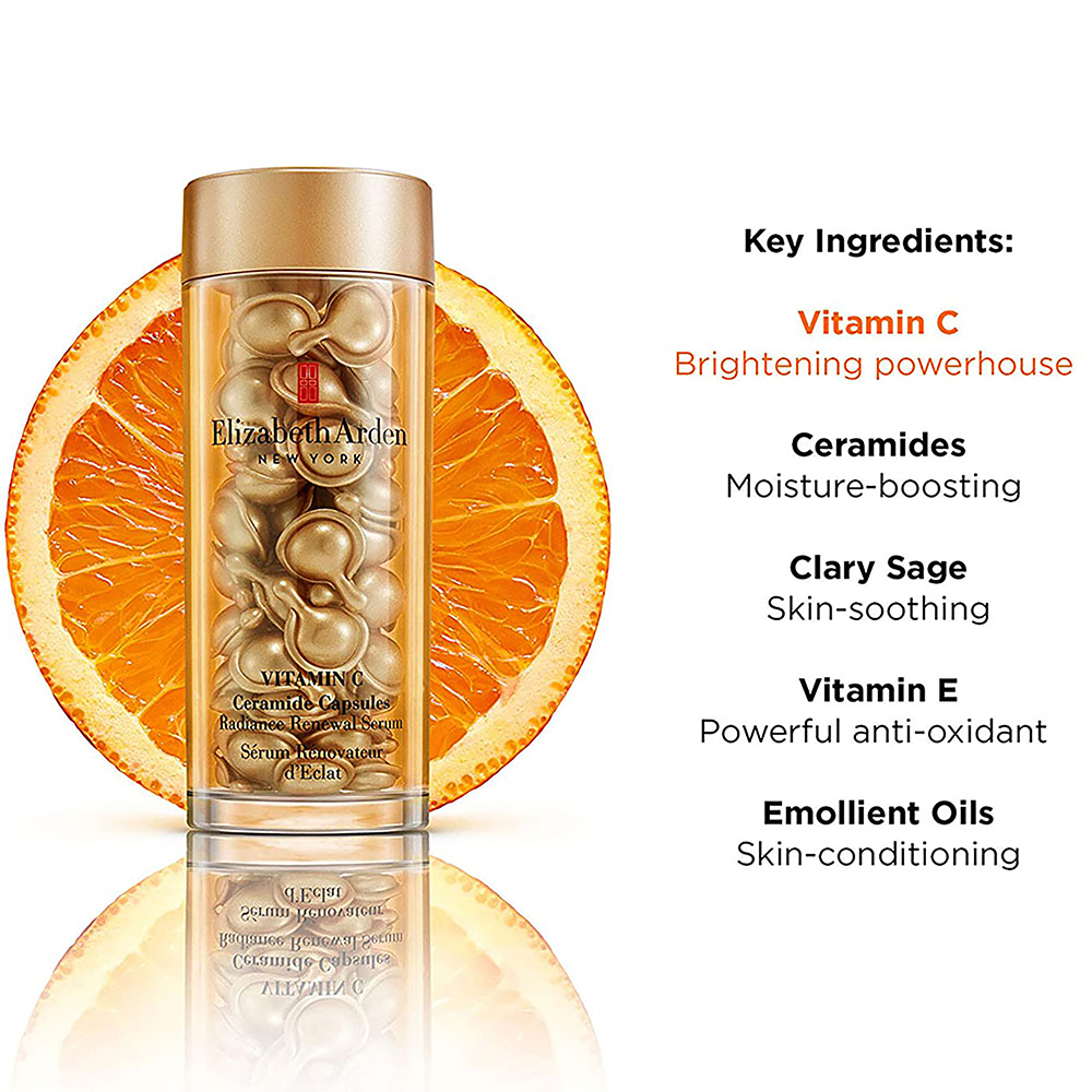 Vitamin C Ceramide Capsules Radiance Renewal Serum. Siero per il viso in capsule con ceramide e vitamina C per tutti i tipi di pelle. Questo siero è 178 volte più efficace della vitamina C convenzionale. Aiuta a illuminare visibilmente e a rassodare uniformemente la pelle e a proteggere dai segni dell’invecchiamento precoce. Elizabeth Arden Vitamin C Ceramide Capsules Radiance Renewal Serum (90 capsule)