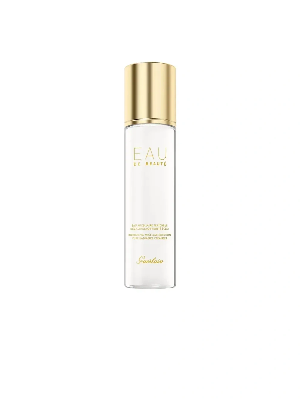 Primo gesto di trattamento essenziale, l’Eau de Beauté di Guerlain concentra tutta l’ efficacia di uno struccante, di un detergente e di una lozione in un unico gesto.