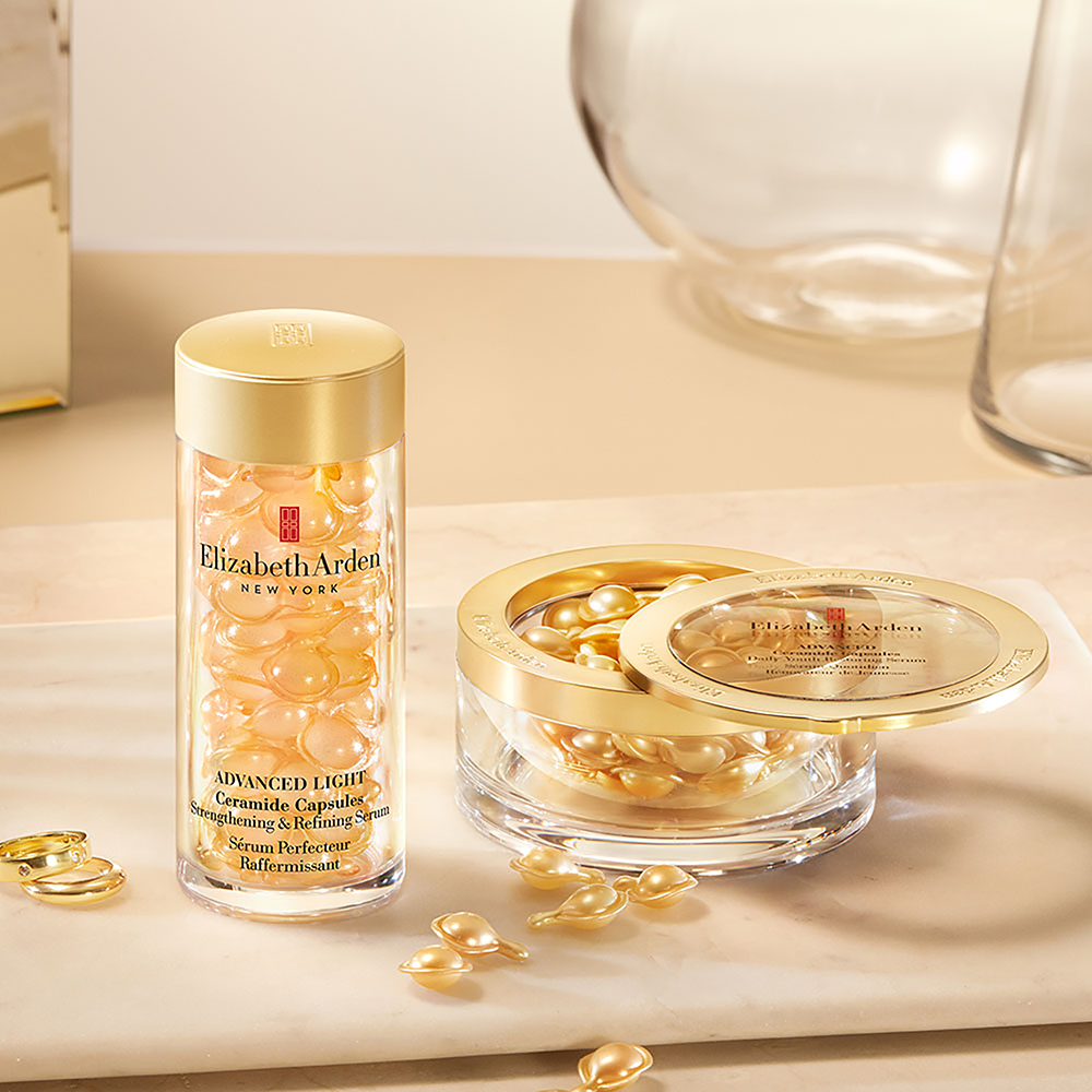Elizabeth Arden Advanced Light Ceramide Capsules Strengthening & Refining Serum è un siero viso in capsule ultraleggero e ad assorbimento rapido, creato per nutrire, affinare e ripristinare la pelle, rendendola più forte e dall’aspetto naturalmente radioso. Questo trattamento rappresenta un vero e proprio gold standard per il rafforzamento della barriera cutanea. Le capsule sono sigillate per tenere fuori luce e aria, così da mantenere ogni volta la formula fresca e potente.