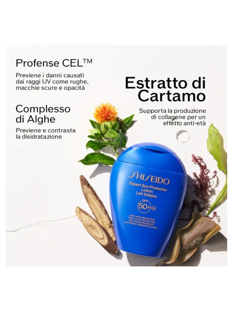 Lozione invisibile e leggera per viso e corpo che offre una protezione efficace dai raggi UVA e UVB. È dotata della NUOVA Tecnologia SynchroShieldRepair™*, il cui velo protettivo si rafforza con l`esposizione al calore, all`acqua e al sudore e si autoripara quando viene danneggiato lievemente da movimenti o sfregamenti. Assicurarsi di riapplicare frequentemente e generosamente prima e durante l`esposizione al sole, poiché nessun prodotto solare può garantire una protezione totale e continua dai raggi solari. Ricordarsi di adottare abitudini responsabili di esposizione al sole, come indicato nella sezione “Modalità d`uso”. *La NUOVA tecnologia SynchroShieldRepair™ è progettata per adattarsi ai fattori ambientali che potrebbero comprometterne l`efficacia (test in vitro). Scegli il meglio del trattamento solare Shiseido con Shiseido Sun Expert Protector Lotion SPF30. Questa lozione sensoriale SPF30 è arricchita con il 68% di ingredienti skincare per una pelle levigata e compatta, e offre un`elevata protezione UVA/UVB. Protezione solare formulata con il 68% di ingredienti skincare: – Complesso di alghe marine combinato con derivati dell`acido glicirrizico: aiuta a lenire la pelle secca e irritata e fornisce idratazione. – Profense CEL: aiuta a proteggere la pelle dai danni fotoindotti e a prevenire rughe e macchie scure – Safflower Extract: aiuta a rafforzare la compattezza e la densità della pelle per un effetto anti-età*. – Complesso Hypotaurine NatureSurge: aiuta a combattere i danni causati da inquinanti atmosferici*. *Test in vitro Flacone in plastica al 70% di origine vegetale (senza tappo e dispenser).