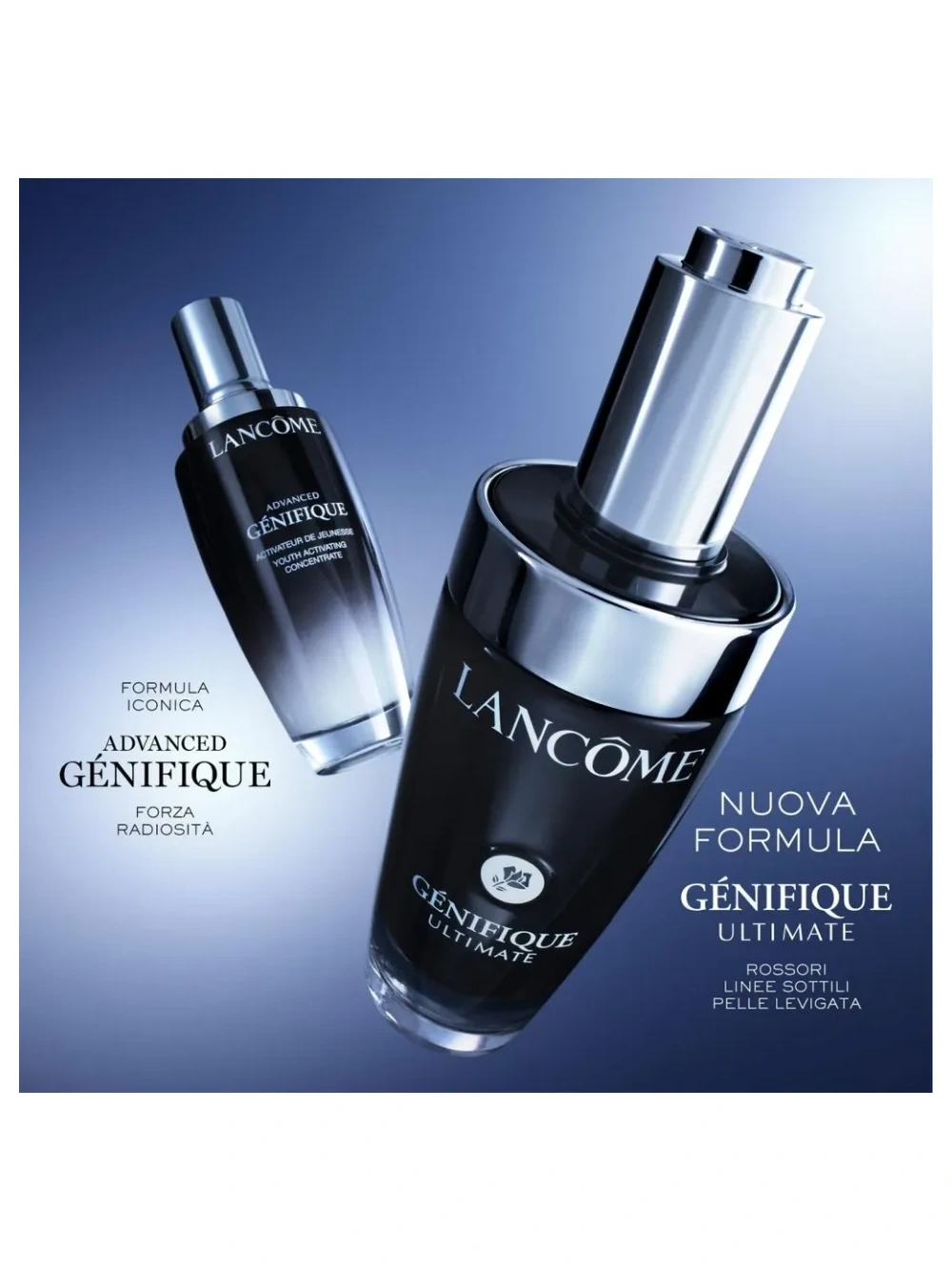 Lancôme Genefique Ultimate Serum 30ml. Adatto per: Unisex, Età consigliata: 25+ anno/i, Adatto per i tipi di pelle: Pelle universale, Effetto Cura della pelle: Antirughe, Antirughe, Idratante, Restringe i pori, Riparazione, Levigante, Emolliente, Ingrediente costitutivo: Acido ialuronico, Volume: 30 mlULTIMA FRONTIERA DELLA RIPARAZIONE, RECUPERO SU 3 PARAMETRI CUTANEI IN UNA SETTIMANA**Risultati dimostrati da test cosmetoclinici su linee sottili, luminosità e pelle levigata dopo 1 settimana, 50 donneUna innovazione nella scienza di riparazione cutanea*: Nuovo Génifique Ultimate, Dual-Repair Augmented Serum Il nuovo siero è alimentato dalla tecnologia Beta Glucan-CM, attivo che agisce favorendo il recupero della pelle. Combinato all’acido ialuronico, estratto di liquirizia e le nostre iconiche frazioni di prebiotici e probiotici, questa formula offre un’azione avanzata per la riparazione cutanea, con un’efficacia mirata su rossori e linee sottili, favorendo una pelle più levigata. In soli 7 giorni** permette il recupero su 3 parametri cutanei, incrementando la qualità della pelle.*in Lancôme **Risultati dimostrati da test cosmetoclinici su linee sottili, luminosità e pelle levigata dopo 1 settimana, 50 donne MIGLIORA LA QUALITÀ COMPLESSIVA DELLA PELLE EFFETTO LENITIVO & IDRATANTE IMMEDIATO AZIONE MIRATA SUI ROSSORI & LINEE SOTTILI PELLE PIÙ LEVIGATA & UNIFORMECOSA FA LA DIFFERENZALancôme crede nella riparazione cutanea. A partire dai 25 anni di età, la capacità della tua pelle di rigenerarsi diminuisce ogni anno, e una pelle che non è in grado di ripararsi invecchia più velocemente.Ispirato da 27 anni di ricerca nell’ambito della scienza della riparazione, il siero viso Génifique Ultimate offre un’azione di doppia riparazione potenziata da un nuovo potente attivo conosciuto per la sua capacità di favorire il rinnovamento cellulare: Beta Glucan-CM.:1. Ripara la barriera cutanea2. Ripara i primi segni dell’invecchiamento.Ogni applicazione contiene 90 trilioni Beta Glucan-CM.Con il siero Génifique Ultimate Dual Repair Augmented, puoi recuperare su 3 parametri cutanei in una sola settimana*.RISULTATI CLINICAMENTE DIMOSTARTI:• ROSSORI -33%**• LINEE SOTTILI -28%***• PELLE LEVIGATA +22%***• PORI -20%***Risultati cosmetoclinicamente dimostrati su linee sottili, luminosità e compattezza dopo 1 settimana, 50 donne**Studi clinici, 75 donne, 8 settimane***Studi clinici, 50 donne, 8 settimaneGenefique Ultimate Serum 30mlCaratteristicheTipo di prodotto: Siero per visoVolume: 30 mlAdatto per: UnisexEffetto Cura della pelle: Antirughe, Antirughe, Idratante, Restringe i pori, Riparazione, Levigante, EmollienteAdatto per i tipi di pelle: Pelle universaleEtà consigliata: 25+ anno/iIngrediente costitutivo: Acido ialuronicoTipo di dispenser: Flacone contagocceTestato clinicamente: SìDermatologicamente testato: SìIngredienti: AQUA / WATER / EAU ● BIFIDA FERMENT LYSATE ● GLYCERIN ● PENTYLENE GLYCOL ● POLYMNIA SONCHIFOLIA ROOT JUICE ● DIMETHICONE ● ALPHA-GLUCAN OLIGOSACCHARIDE ● SODIUM CARBOXYMETHYL BETA-GLUCAN ● SODIUM HYALURONATE ● SALICYLOYL PHYTOSPHINGOSINE ● ADENOSINE ● MANNOSE ● AMMONIUM POLYACRYLOYLDIMETHYL TAURATE ● DIPOTASSIUM GLYCYRRHIZATE ● HYDROXYACETOPHENONE ● CAPRYLYL GLYCOL ● TETRASODIUM GLUTAMATE DIACETATE ● CITRIC ACID ● LACTIC ACID ● LACTOBACILLUS ● ACETIC ACID ● MALTODEXTRIN ● XANTHAN GUM ● FAEX EXTRACT / YEAST EXTRACT / EXTRAIT DE LEVURE ● OCTYLDODECANOL ● BUTYLENE GLYCOL ● SODIUM BENZOATE ● PARFUM / FRAGRANCE