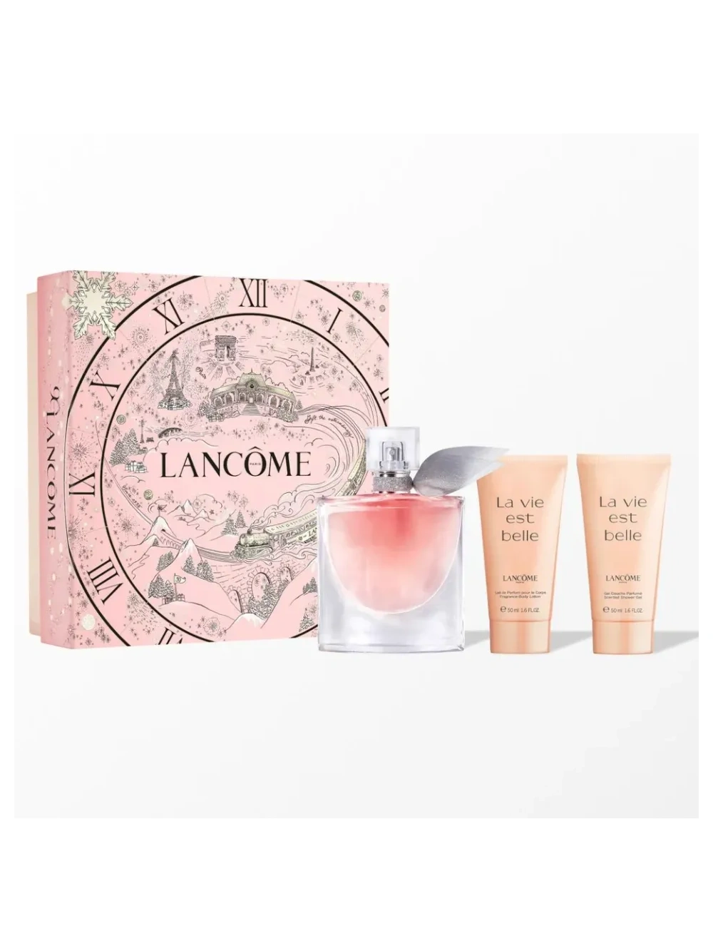 Lancôme La Vie Est Belle 50/50/50ml. Adatto per: Donna, Numero di profumo: 1 pz, Tipo di profumo: Eau de parfum. Paese di origine: Francia. Volume del bagnoschiuma: 50 ml, Volume della lozione per corpo: 50 ml Queste festività natalizie, intraprendi uno straordinario viaggio da Parigi alla Felicità, la destinazione del nostro marchio dal 1935, e celebra 90 anni di magia. Allo scoccare della mezzanotte, il Lancôme Express inizia il suo leggendario viaggio à la française, portando con sé lo spirito delle feste, verso un paesaggio incantevole: un festival di regali in un magico paese delle meraviglie, che celebra il viaggio più indimenticabile dell`anno. Lancôme svela una speciale collezione regalo nell`iconico rosa Lancôme disegnata dall`artista francese Safia Ouares. Ogni confezione svela un gioiello di bellezza per farti risplendere per tutte le feste. Questo cofanetto regalo include: – LA VIE EST BELLE EDP 50 ml – LA VIE EST BELLE DOCCIA GEL 50 ml – LA VIE EST BELLE BODY LOTION 50 ml