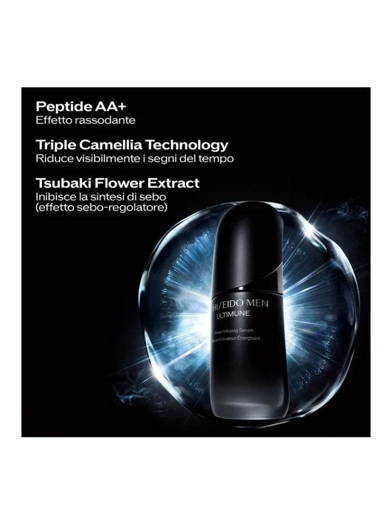 Basato su oltre 100 anni di ricerca Shiseido sulla pelle maschile. DONA ALLA TUA PELLE UN NUOVO FUTURO. Per il 92% dei soggetti, la pelle appare più compatta dopo 3 giorni(1) Formulato con Peptide AA , questo siero multifunzione contrasta diversi inestetismi della pelle maschile (disidratazione, opacità, mancanza di luminosità, pori visibili, ruvidità, mancanza di compattezza, linee sottili) in un unico passaggio. (1) Test consumatore su 108 uomini.