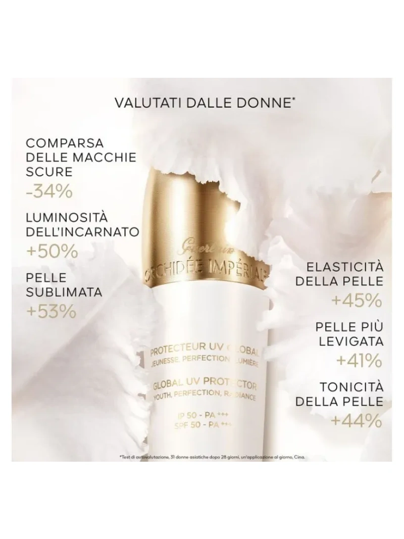 Il protecteur uv global orchidée impériale brightening concentra gli straordinari poteri rigeneranti e illuminanti delle orchidee in un fluido ad alta protezione spf 50 – pa . Aiuta a proteggere l`epidermide dalle aggressioni esterne causa d`incarnato spento e rivela una luce imperiale che risveglia la giovinezza della pelle. Un gioiello di tecnologia in un velo impercettibile, per un effetto correttivo e una pelle perfetta.