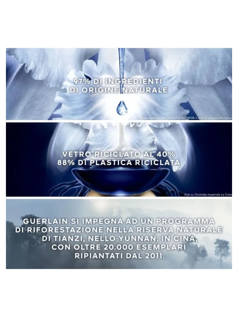 Un vero concentrato di rigenerazione, Orchidée Impériale Le Masque avvolge la pelle in un velo di benessere rivitalizzante. Associa la tecnologia Orchid Morpho-Peptide, che agisce sui punti di ancoraggio della pelle coinvolti nel mantenimento della sua morfologia¹, a un peptide lenitivo che agisce sulle rughe legate alle micro-contrazioni¹. La pelle ha un aspetto rimpolpato e levigato e i tratti del viso appaiono rilassati. La mattina, applicare uno strato spesso della maschera utilizzando il pennello in dotazione e lasciare assorbire 10 minuti, procedere poi con il prodotto in eccedenza. La sua formula densa e confortante idrata intensamente, la pelle appare più liscia, forte, risplendente di vitalità. Fin dalla prima applicazione la sera prima di andare a dormire, le donne percepiscono al risveglio l`effetto di tre ore di sonno aggiuntive, rivelando una pelle visibilmente riposata². ¹Test in vitro sugli ingredienti. ²Autovalutazione con questionario al risveglio su 32 donne, dopo un`applicazione serale.