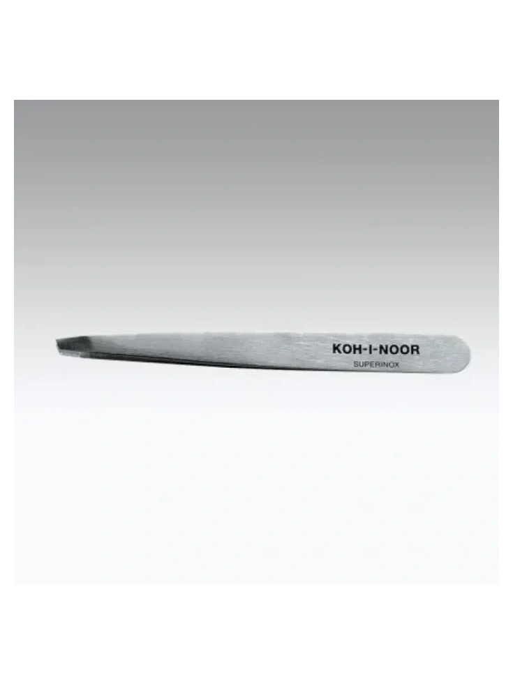 Pinzetta con punta obliqua piatta. Grazie alla perfetta chiusura delle punte permette di modellare le sopraciglia con facilità e precisione. Materiale: acciaio Inox anti ruggine a bassissimo contenuto di Nikel.