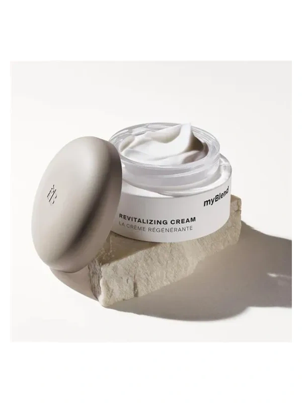 Adatta sia per il giorno che per la notte, la Crema Rivitalizzante di myBlend agisce sui principali fattori che causano l’invecchiamento cutaneo e su quelli essenziali per una pelle bella. Questa crema idratante e nutriente ripristina la barriera cutanea e contribuisce a migliorarne l’elasticità. La pelle appare completamente rivitalizzata, visibilmente più liscia, soda e rimpolpata. Rughe e linee sottili appaiono meno visibili. La pelle è più bella, rinforzata e ha un aspetto sano e luminoso. Ingredienti chiave Complesso di peptidi 4P – Rivitalizza le forze vitali stimolando i meccanismi naturali indeboliti dallo stress quotidiano. Estratto di curcuma fermentato e derivato della vitamina E – Doppia azione antiossidante per un effetto rinforzante. Prebioma marino – Rafforza le difese naturali della pelle e l’equilibrio del microbiota. Acido ialuronico e squalano vegetale – Pelle intensamente idratata e luminosa. Burro di karité – Pelle intensamente nutrita.