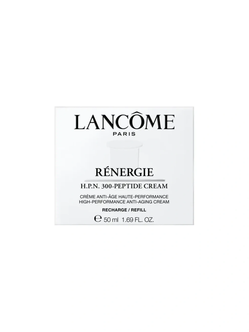 Lancôme Ricarica Crème Rénergie H.P.N. 300-Peptide 50ml. Tipo di prodotto: Crema giorno e notte, Adatto per: Donna, Adatto per i tipi di pelle: Pelle universaleRIGENERA LA PELLE PIÙ VELOCEMENTE DEL PASSARE DEL TEMPOScopri la nuova era nell’efficacia anti-età ad alta performance di Lancôme, ispirata alla scienza della rigenerazione. Per la prima volta, Lancôme unisce acido ialuronico, oltre 300 peptidi e il potere della niacinamide in un’unica crema. E’ stato dimostrato che la pelle delle donne di età compresa tra i 40 e i 59 anni che utilizzano la crema si rigenera più velocemente, come se fosse una pelle più giovane.Risultati provati già dalla prima settimana.*RISULTATIEFFETTO LIFTING1° settimana: La pelle acquista rinnovata compattezza e le zone in cui appare più rilassata iniziano a mostrare miglioramenti significativi;2° settimana: I risultati si intensificano con un aumento di elasticità e tono dimostrati clinicamente;8° settimana: +27% effetto lifting, +38% compattezza, +35% elasticità*.CORREZIONE DELLE RUGHE1° settimana: riduzione di rughe di viso e collo;2° settimana: la pelle appare come rigenerata, +39% levigatezza*;8° settimana: +48% levigatezza* e -21% rughe*.RIDUZIONE DELLE MACCHIE SCURE1° settimana: risultati comprovati su luminosità e riduzione delle discromie;2° settimana: notevole miglioramento dell’uniformità dell’incarnato;8° settimana: -22% macchie scure*, +22% uniformità*.L’84% delle donne acquisterebbe Rénergie H.P.N. 300-Peptide Cream***Risultati clinici, 84 donne, diversi fototipi ed etnie.**Test di autovalutazione, 75 donne dopo 8 settimane.Ricarica Crème Rénergie H.P.N. 300-Peptide 50mlCaratteristicheTipo di prodotto: Crema giorno e notteAdatto per: DonnaAdatto per i tipi di pelle: Pelle universaleArea di applicazione: VisoEffetto Cura della pelle: Antimacchia, Antirughe, Elasticità, Rassodante, Lifting, RigeneranteVolume: 50 mlTipo di dispenser: Vaso di ricaricaIngrediente costitutivo: Acido ialuronicoDermatologicamente testato: SìIngredienti: AQUA / WATER / EAU • GLYCERIN • DIMETHICONE • CETEARYL ALCOHOL • THEOBROMA GRANDIFLORUM SEED BUTTER • ALCOHOL DENAT. • CETEARYL ISONONANOATE • NIACINAMIDE • GLYCERYL STEARATE • PEG-100 STEARATE • ISOPROPYL PALMITATE • OCTYLDODECANOL • CYCLODEXTRIN • HYDROLYZED LUPINE PROTEIN • PISUM SATIVUM EXTRACT / PEA EXTRACT • ADENOSINE • CAPRYLOYL SALICYLIC ACID • HYDROLYZED HYALURONIC ACID • HYDROLYZED LINSEED EXTRACT • PENTAERYTHRITYL TETRA-DI-T-BUTYL HYDROXYHYDROCINNAMATE • TRISODIUM ETHYLENEDIAMINE DISUCCINATE • TOCOPHERYL ACETATE • CERA ALBA / BEESWAX / CIRE DABEILLE • ORBIGNYA OLEIFERA SEED OIL • SIMMONDSIA CHINENSIS BUTTER / JOJOBA BUTTER • CETEARYL GLUCOSIDE • CITRIC ACID • HYDROXYETHYL ACRYLATE/SODIUM ACRYLOYLDIMETHYL TAURATE COPOLYMER • POLYSORBATE 60 • POTASSIUM CETYL PHOSPHATE • SORBITAN ISOSTEARATE • TOCOPHEROL • DIMETHICONE/POLYGLYCERIN-3 CROSSPOLYMER • BENZYL ALCOHOL • GERANIOL • LIMONENE • CHLORPHENESIN • DIPROPYLENE GLYCOL • PHENOXYETHANOL • SODIUM BENZOATE • PARFUM / FRAGRANCE.Istruzioni d’uso: Inizia la tua routine con Rénergie H.C.F. Triple Serum, da applicare su pelle detersa per aiutare a rigenerare la pelle con una tripla azione: rughe, volumi, macchie scure. Applica 2 pompette e stendi uniformemente, con movimenti verso l’alto. Applica la crema Rénergie H.P.N. 300-Peptide Cream dopo il siero tripla azione, per rigenerare la pelle più velocemente del passare del tempo, come se fosse una pelle più giovane.