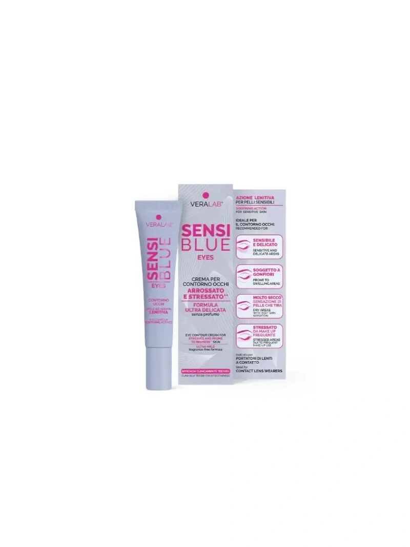 Veralab Sensiblue Eyes è una crema contorno occhi lenitiva senza profumo che attenua rossori, occhiaie e gonfiori. Ideale per occhi sensibili e delicati. in vendita online su www.tuttofarma.it