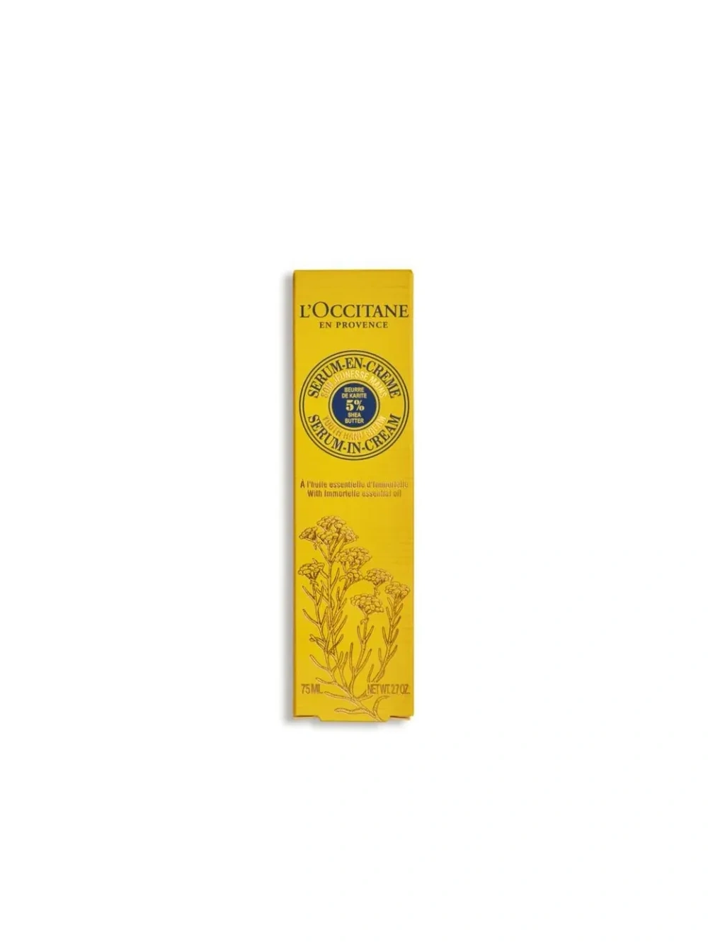 L`Occitane Siero-in-Crema Trattamento mani anti-età 75ml. Tipo: Crema (colore), Adatto per: Donna, Adatto per i tipi di pelle: Pelle invecchiata, Pelle universale. Quantità per pacco: 1 pz Giorno dopo giorno, la pelle delle mani è meno segnata e la sua elasticità sembra migliorata. CREMA MANI ANTI-ETÀ ARRICCHITA CON BURRO DI KARITE E OLIO ESSENZIALE DI IMMORTELLE Giorno dopo giorno, la pelle delle mani è meno segnata e la sua elasticità sembra migliorata. Più uniforme, la pelle appare rimpolpata e luminosa, visibilmente più giovane. La sua texture siero-in-crema si assorbe rapidamente e il suo finish vellutato lascia le mani morbide e setose, delicatamente profumate di una fragranza aromatica leggera. Il Burro di Karité, conosciuto per le sue proprietà nutrienti, incontra L`Immortelle, il fiore che non appassisce mai. Grazie al suo cocktail di ingredienti ultra concentrato, questo trattamento è specifico per la pelle delicata delle mani. Aiuta ridurre visibilmente i segni visibili dell`età. KARITe Il burro di karité è un ingrediente di bellezza ideale, utilizzato dalle donne dell`Africa subsahariana per aiutare a proteggere e nutrire la pelle e i capelli. Per questa offerta completa di trattamenti per il viso, il corpo e i capelli, L`OCCITANE ha attivato una collaborazione equa e duratura con le donne del Burkina Faso che lo producono. L`OCCITANE integra il burro di karité, a concentrazioni eccezionali, per aiutare a nutrire, proteggere e lenire la pelle. Siero-in-Crema Trattamento mani anti-età 75ml