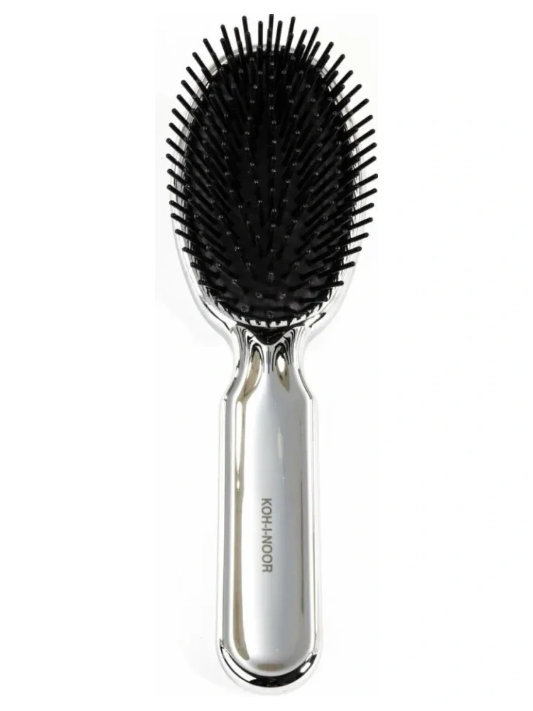 Spazzola pneumatica cromata o dorata con manico in metallo, lavorata a mano seguendo la tradizione di eleganza e design firmata Koh-I-Noor, per tutti coloro che desiderano prendersi cura di sé.