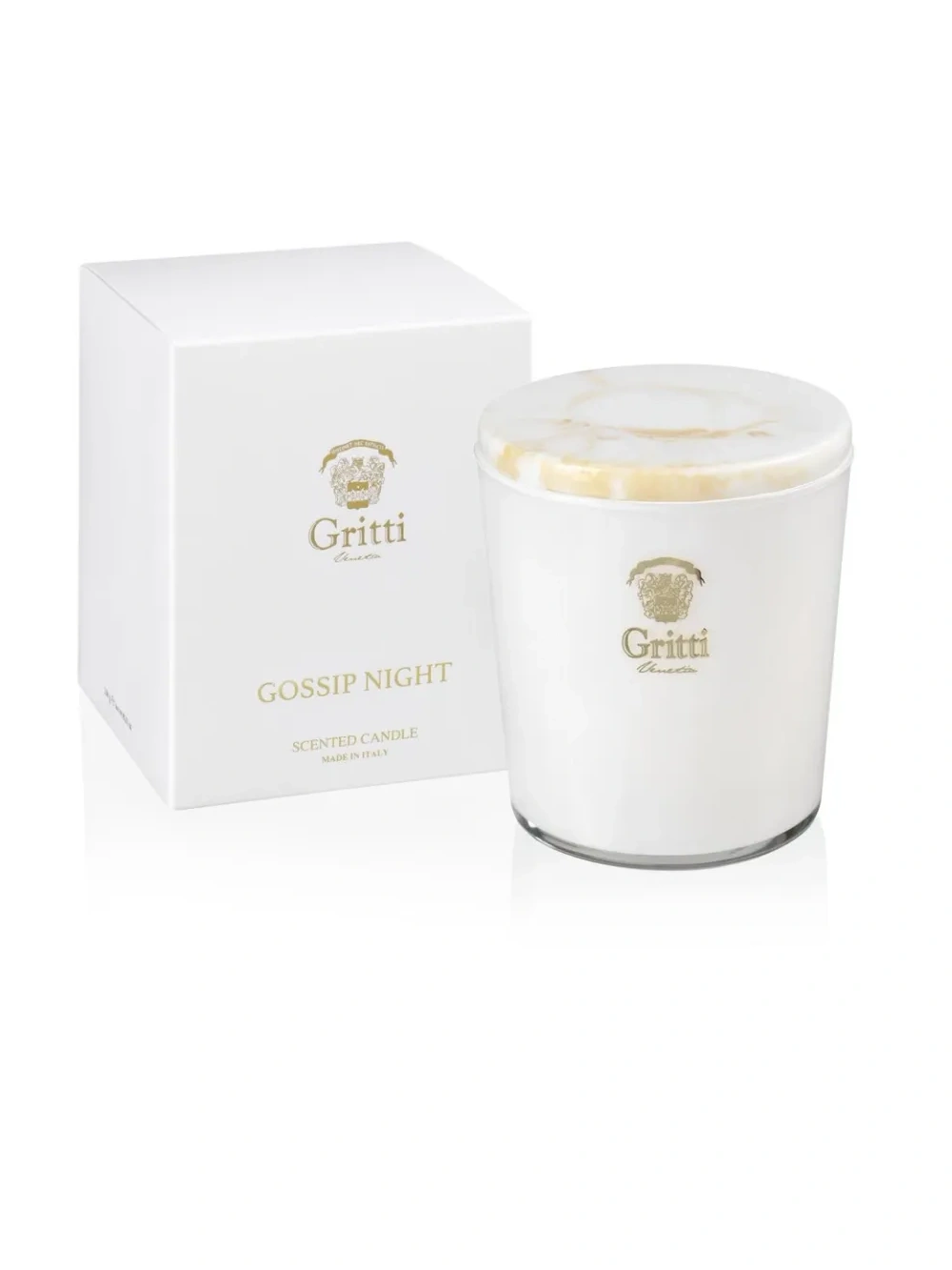Gritti Venetia Gossip Night Candela 250 gr. Peso: 250 g. Quantità per pacco: 1 pz. Tipo di imballo: ScatolaGritti Venetia presenta la nuova aggiunta alla White Collection: i best-seller Adèle, Chantilly e Gossip Night nei formati di bagno schiuma, crema corpo e candela.Concedetevi un rituale di bellezza dal profumo seducente e irresistibile, scegliendo tra la delicatezza dell`osmanto (Adèle), la cremosità della pesca (Gossip Night) o la dolcezza della vaniglia di Madagascar (Chantilly).Dal primo tocco del bagno doccia sulla pelle, passando per la leggerezza della crema e fino alla danza della fiamma della candela, i profumi più amati di Gritti Venetia sono pronti ad accompagnarvi per tutta la giornata.Gossip Night Candela 250 grDettagli tecniciForma: CilindroColore del prodotto: BiancoProfumata: SìProfumo: PescaUso appropriato: InternoAmbiente di utilizzo: UniversaleDimensioni e pesoPeso: 250 gContenuto dell`imballoQuantità per pacco: 1 pzPortacandele incluso: SìDati su imballaggioTipo di imballo: Scatola