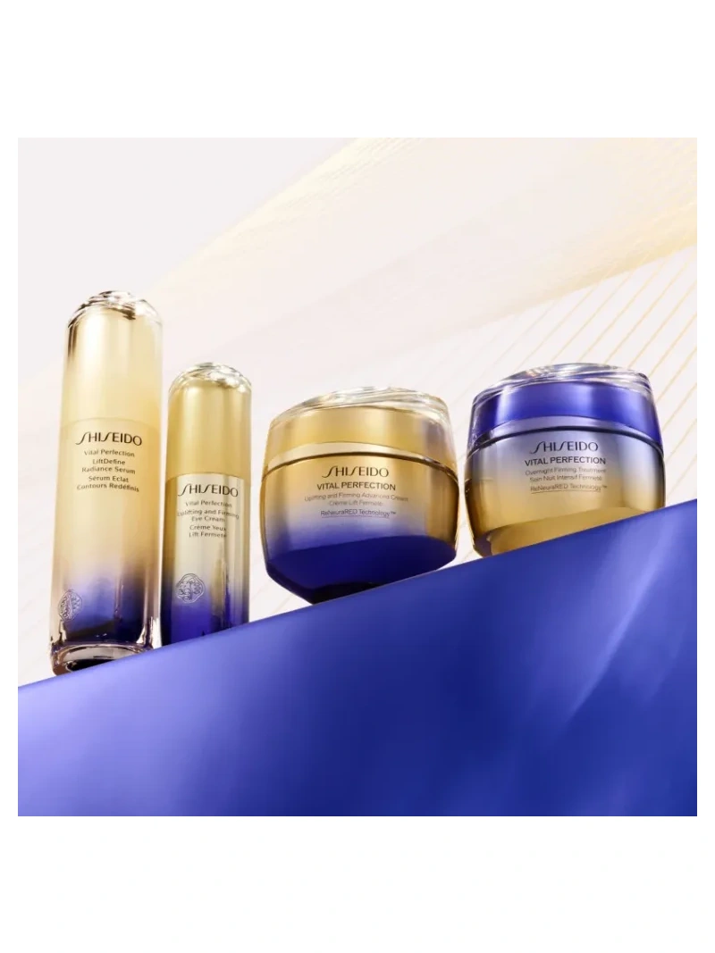 Vital Perfection Advanced cream la crema Shiseido anti-età per una pelle dall’aspetto 35% più liftato, rassodato e luminoso in una sola settimana (1) Grazie all’esperienza giapponese nel campo delle neuroscienze, la nuova formula di Uplifting and Firming Advanced Cream è 4 volte più efficace della precedente (2). Ora in formato ricaricabile! (1) Test di autovalutazione da parte di 110 donne (2) Punteggio clinico su compattezza e luminosità rispetto alla formula precedente effettuato su 35 donne. (3) Test strumentale su 27 donne (4) Test consumatore su 110 volontarie. % dopo 8 settimane. Per tutti i tipi di pelle. Prodotto dermatologicamente testato. Non comedogenico. UNA ROUTINE VITAL PERFECTION IN 3 FASI 1. Come primo prodotto, utilizza Vital Perfection Liftdefine Radiance Serum 2. Vital Perfection Uplifting and Firming Eye Cream per prenderti cura del contorno occhi. 3. Poi applica Vital Perfection Uplifting and Firming Advanced Cream, crema 24 ore. NUOVO FORMATO RICARICABILE! Nuova Uplifting and Firming Advanced Cream ora ricaricabile, per ridurre il consumo di plastica fino al 79%*. *rispetto alla crema standard