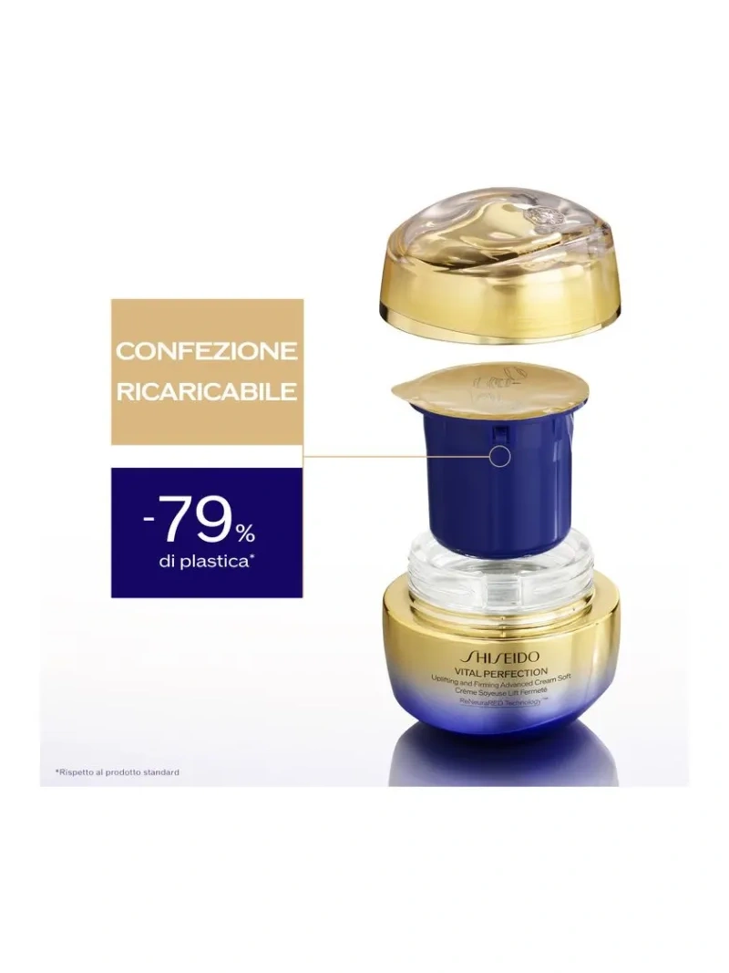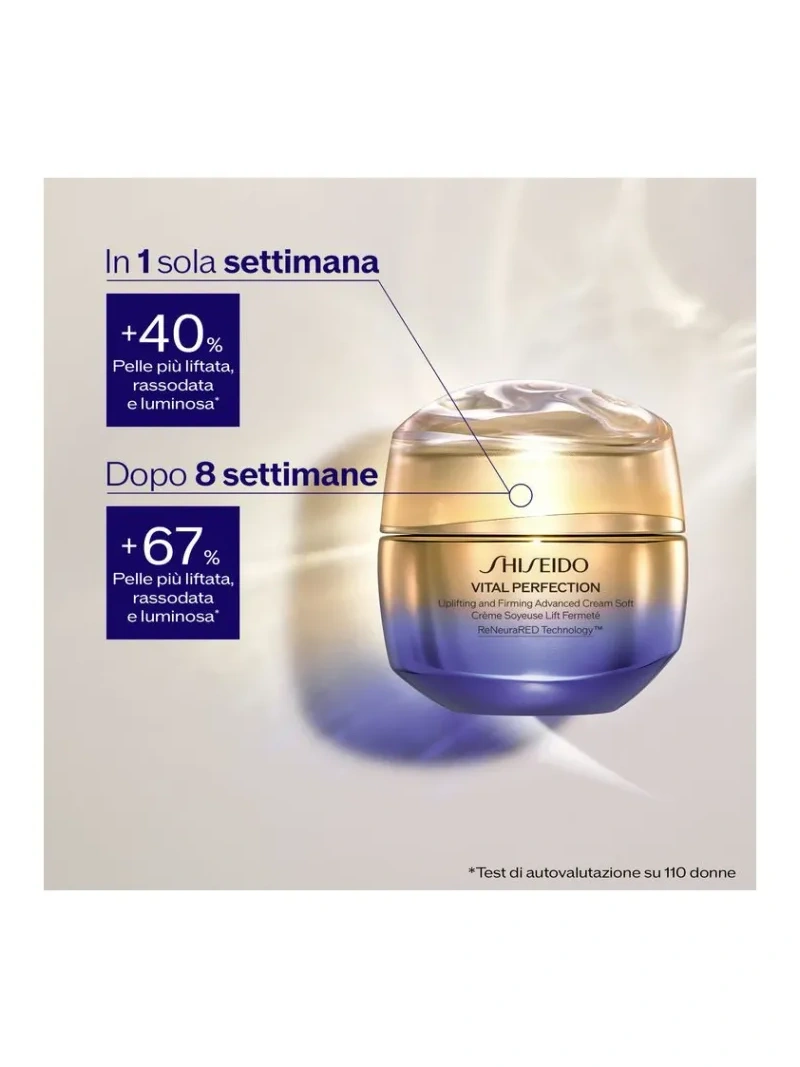 Scopri Vital Perfection Advanced Soft cream la crema Shiseido anti-età per una pelle dall’aspetto 40% più liftato, rassodato e luminoso in una sola settimana (1) Grazie all’esperienza giapponese nel campo delle neuroscienze, la nuova formula di Uplifting and Firming Advanced Soft Cream è ora disponibile in una nuova texture leggera e nel formato ricaricabile. (1) Test di autovalutazione da parte di 110 donne. VITAL PERFECTION: LINEA N.1 SHISEIDO ANTI-ETÀ – EFFETTO LIFTANTE & RASSODANTE – Vital Perfection, grazie ad avanzati benefici anti-età supportati da un approccio neuroscientifico, si conferma la linea numero 1 di Shiseido per le donne sopra i 45 anni, per contrastare le rughe profonde, la perdita di tonicità e la comparsa di macchie scure. – Libera il tuo potenziale interiore con un’esperienza rivitalizzante, risultati clinicamente testati, per una pelle dall’aspetto migliorato.